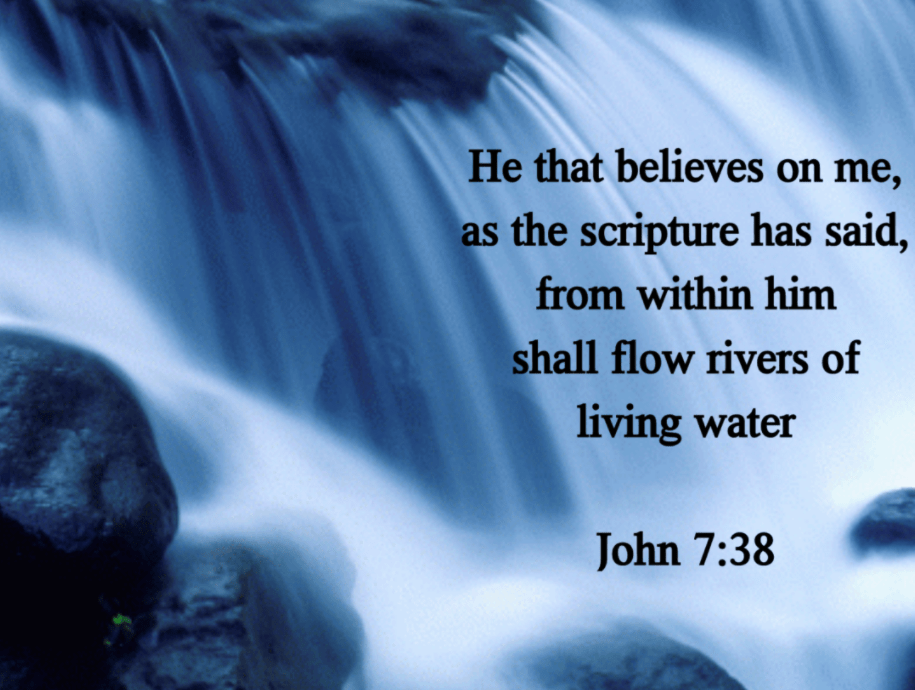 Jesus stood and said in a loud voice, “Let anyone who is thirsty come to me and drink. Whoever believes in me, as Scripture has said, rivers of living water will flow from within them.” By this he meant the Spirit, whom those who believed in him were later to receive. (John 7:37-39)
