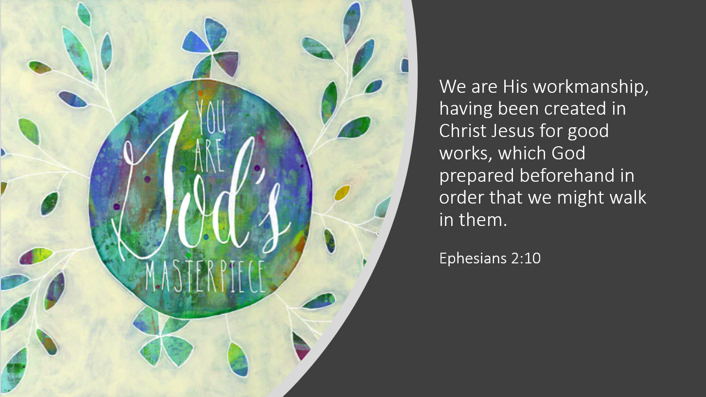 You are God’s masterpiece, created in Christ Jesus for good works, which he planned for us to walk in. Ephesians 2:10